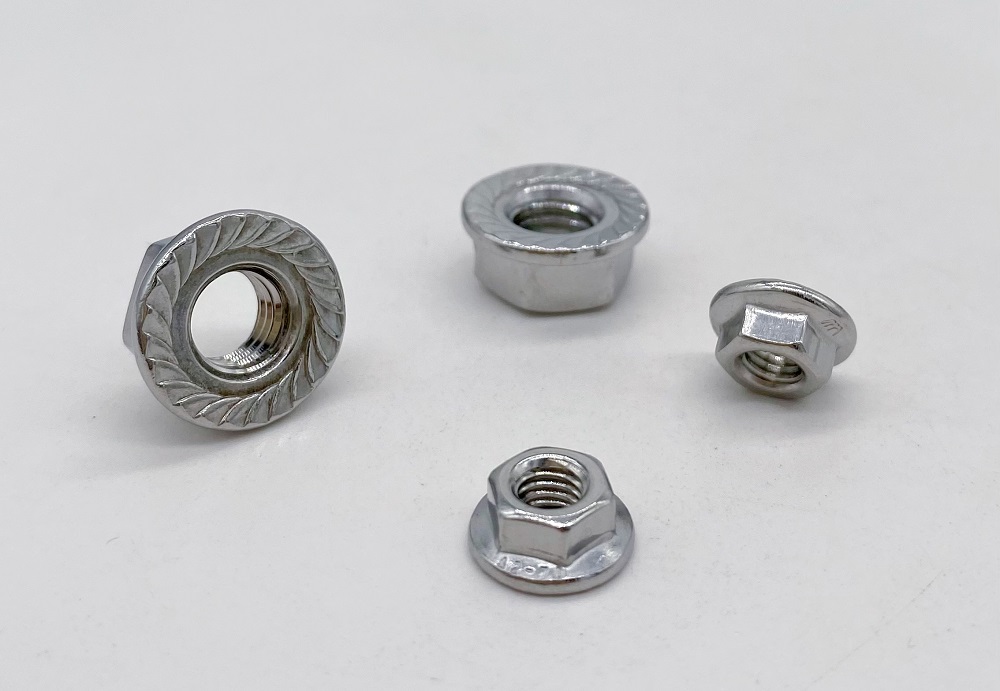 Nut Nut: còn được gọi là đai ốc đệm hoặc đai ốc răng, kích thước và đặc điểm kỹ thuật của nó giống như các loại hạt hình lục giác, nhưng miếng đệm và đai ốc được tích hợp, với mô hình răng không trượt, làm tăng diện tích tiếp xúc bề mặt với phôi và hiệu suất chống lo lắng mạnh hơn. Chủ yếu được sử dụng để kết nối hai đường ống hoặc đường ống và thiết bị để đảm bảo sự vững chắc và niêm phong kết nối